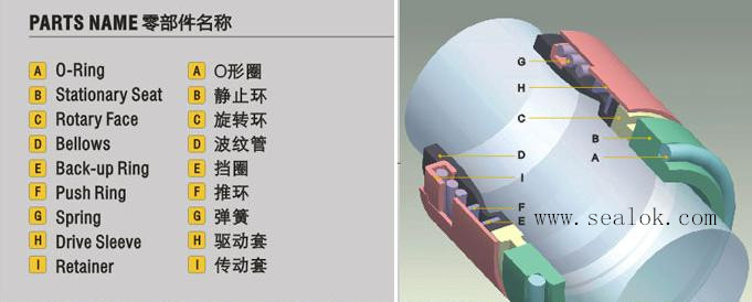(1). 端面摩擦副(动、静环)保持紧密贴合组成密封面防止介质泄漏.要求动、静环具有良好的耐磨性,动环可以轴向移动,自动补偿密封面磨损,使之与静环良好地贴合,静环有浮动性,起缓冲作用;