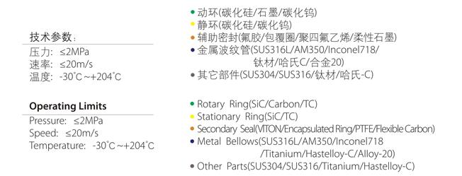 | 材 料: | 动环(碳化硅/石墨/碳化钨) 静环(碳化硅/碳化钨) 辅助密封(柔性石墨) 金属波纹管(SUS316L/AM350/Inconel718/钛材/哈氏C/合金20 |